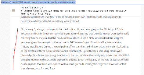 sự trấn áp, dẫn đến cái chết của 3 cán bộ công an và ông Lê Đình Kình. Bộ Ngoại giao Mỹ chọn tin